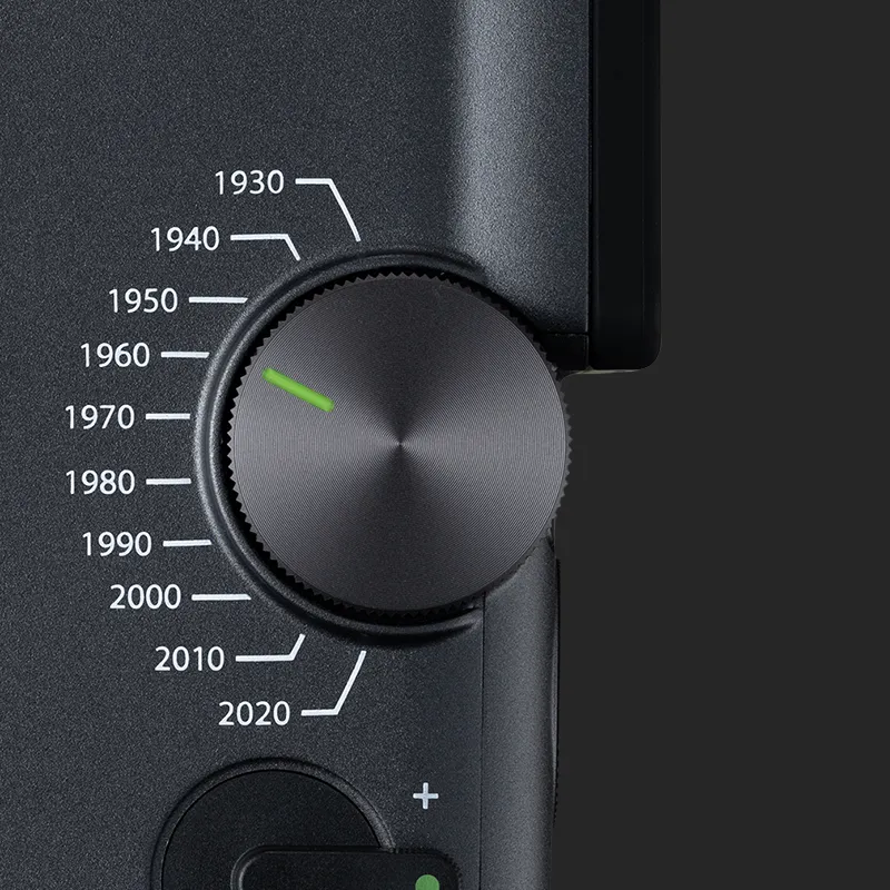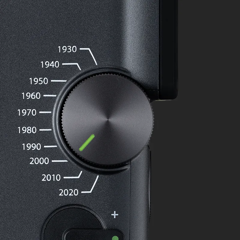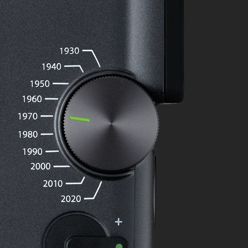 Drehe die Zeit zurück mit dem Eras Dial™ – einer tragbaren Zeitmaschine, die es dir ermöglicht, 10 Jahrzehnte des Stils zu kontrollieren. Vom körnigen Charme der 1930er bis zur raffinierten Schärfe der 2020er bringt jede Ära ihr eigenes Aussehen und ihre eigenen Soundeffekte für ein zeitloses, filmisches Finish.