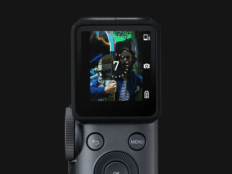 Fühl dich wie ein Reportagefotograf, Filmemacher oder stilbewusster Designliebhaber mit dem Sucher- und Griffzubehör sowie dem hochwertigen Handschlaufe – alles, was du brauchst, um Videos selbstbewusst aufzunehmen und Fotos zu machen.